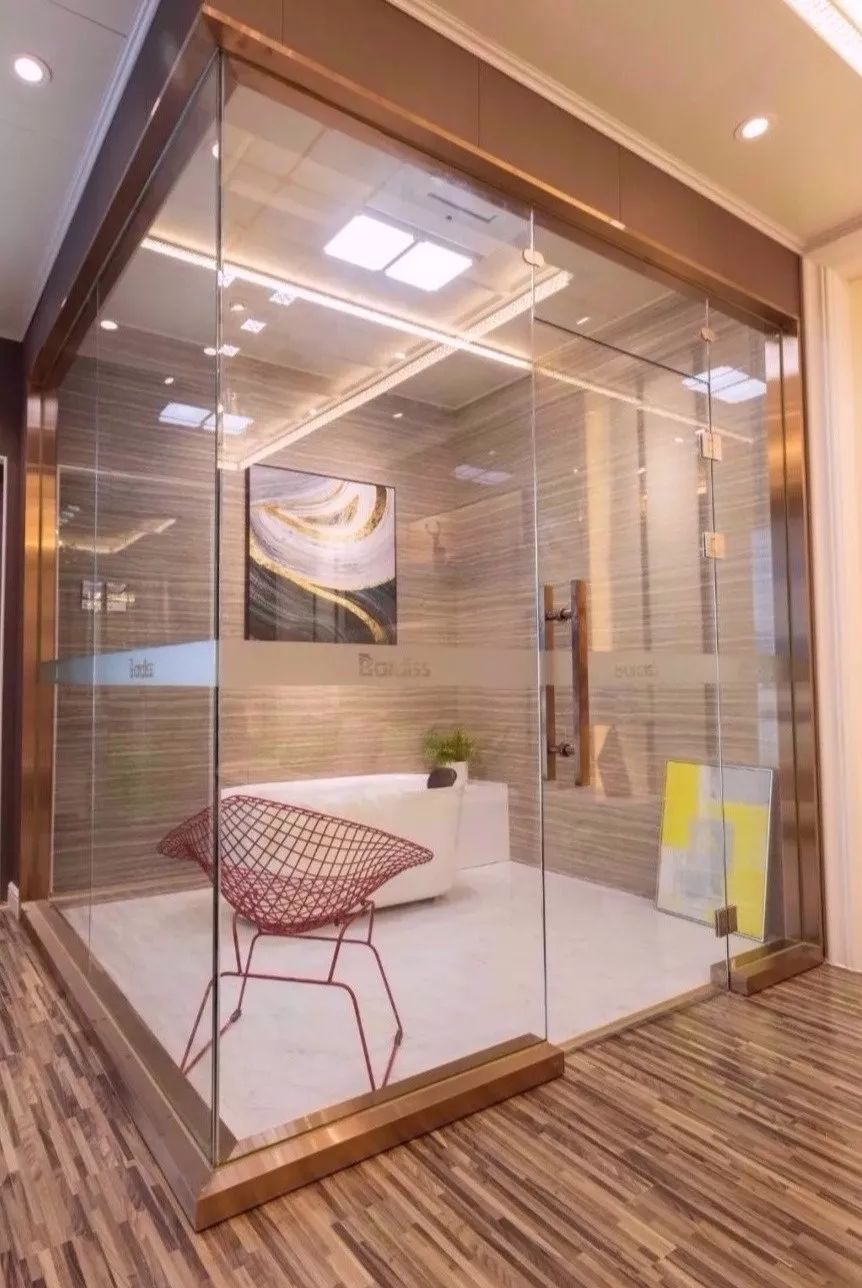 一天勞累工作以后,到浴室里泡一個(gè)澡,有助于緩解疲勞,舒緩身心。設(shè)計(jì)師在設(shè)計(jì)巴迪斯六代輕奢旗艦店浴室模擬間時(shí),通過(guò)裝飾品,合理的利用了浴室有限的空間,避免了冗余,巧妙地將浴室的氛圍渲染了出來(lái),勾畫(huà)出設(shè)計(jì)的美感。