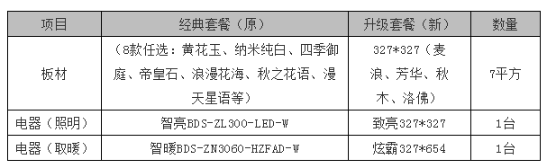 ③+1000元經典套餐板材升級為327大板系列、四合一智暖取暖器升級為五合一炫霸取暖器