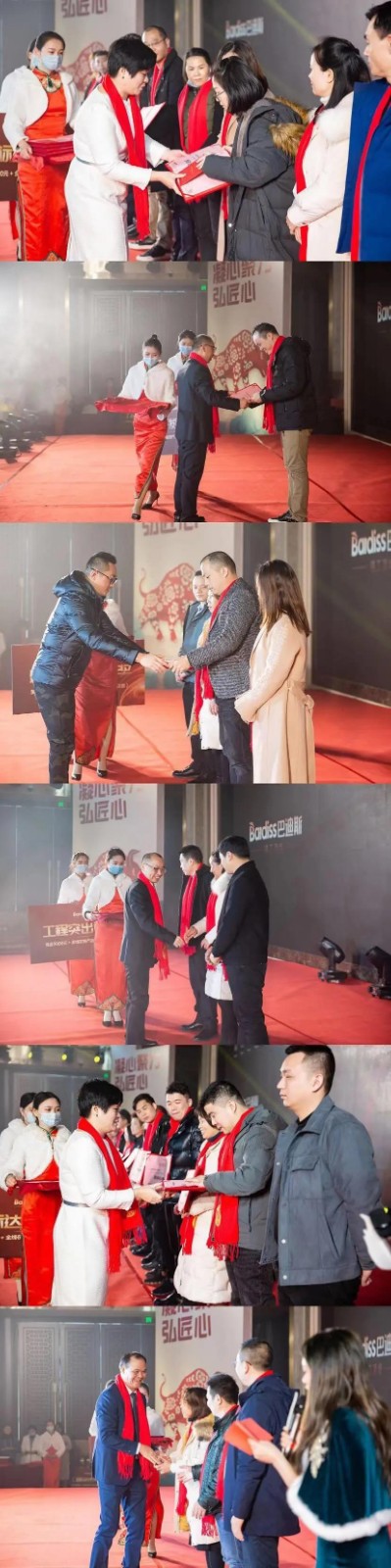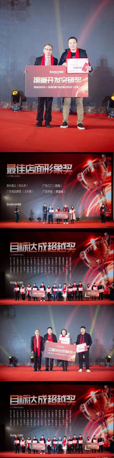 2020,他們用優異的表現為巴迪斯做出了卓越的貢獻,為此,巴迪斯為他們頒發了“目標達成超越獎”、“估值目標達成獎”、“工程突出貢獻獎頒獎”、“渠道開發突破獎”、“同比持續增長獎”以及“ 最佳店面形象獎”。一個個并肩奮斗的故事凝聚在獎項中,印證著巴迪斯與經銷商之間的共勉互利,合作共贏。