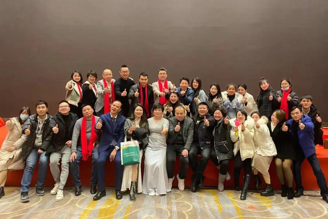 與全體經銷商共拍合影留念,大家齊聲大喊巴迪斯一家人一條心、一個團隊一起拼。那個氣勢,真的氣勢恢宏。