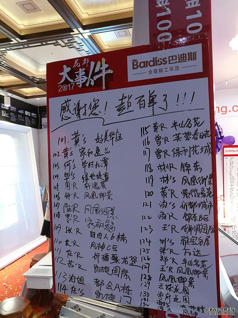 本次活動由巴迪斯商學院全程策劃跟進,由巴迪斯國內銷售部落地執行。當然,此次活動能夠取得圓滿成功,更離不開花都巴迪斯旗艦店楊總的鼎力支持和積極配合。活動過程中,楊總率領20多位花都專賣店的銷售精英一起奮戰,精心布置展位,力求把最好的一面展示出來,讓消費者切身實地的體驗巴迪斯精工頂墻產品特有的強勁環保功效和精美的裝飾效果。