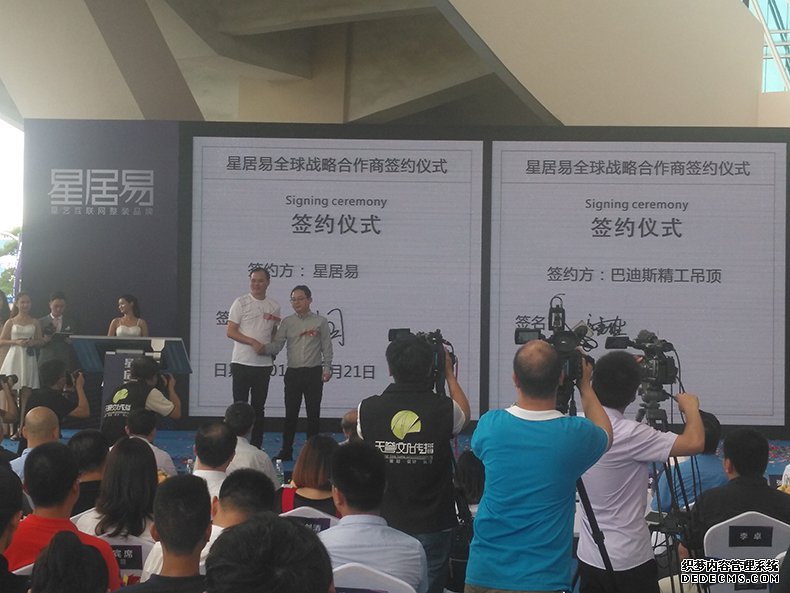 會上,國內(nèi)集成吊頂行業(yè)領導者——巴迪斯精工頂墻董事長龍國勝,也在開業(yè)慶典上表達了對星居易品牌發(fā)布及廣州旗艦店開張的美好祝福和誠摯恭賀。他表示,依托星藝集團強大的品牌實力,過硬的施工水平及能力,豐富的施工和裝修管理經(jīng)驗,相信星居易的發(fā)展前景勢必積極、蓬勃,同時也期待雙方未來的合作更上一層樓。隨后,巴迪斯董事長龍國勝與星居易總經(jīng)理王明國,正式簽署合作協(xié)議,雙方結為全球戰(zhàn)略合作伙伴,強強聯(lián)合,合作共贏,打造家裝整裝市場供應鏈合作的典范!