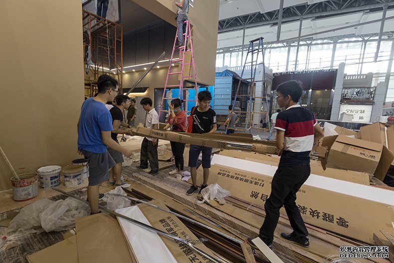 從七月四日開始,我們就開始有條不絮的進入展會前期的布展工作,從展廳的搭建到軟裝的布置到最后全部完工,我們進行了為期四天的精心準備。一個個忙碌的身影,在樓層間穿梭、來回奔走,一塊塊模板、一張張畫布,一步步按計劃進行,展會布置現場忙而不亂,精心雕琢筑造精美的展館。