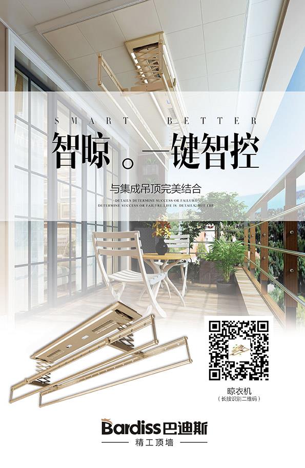 巴迪斯集成吊頂完美適配的晾衣機(jī),集一鍵智控、LED照明、紫外線(xiàn)殺菌以及四核風(fēng)干于一體,除此之外,還有遇阻保護(hù)、靜音運(yùn)行等功能,有時(shí)尚金與時(shí)尚銀兩種顏色,不管是從功能需求還是外觀(guān)需求都能讓您得到滿(mǎn)足。