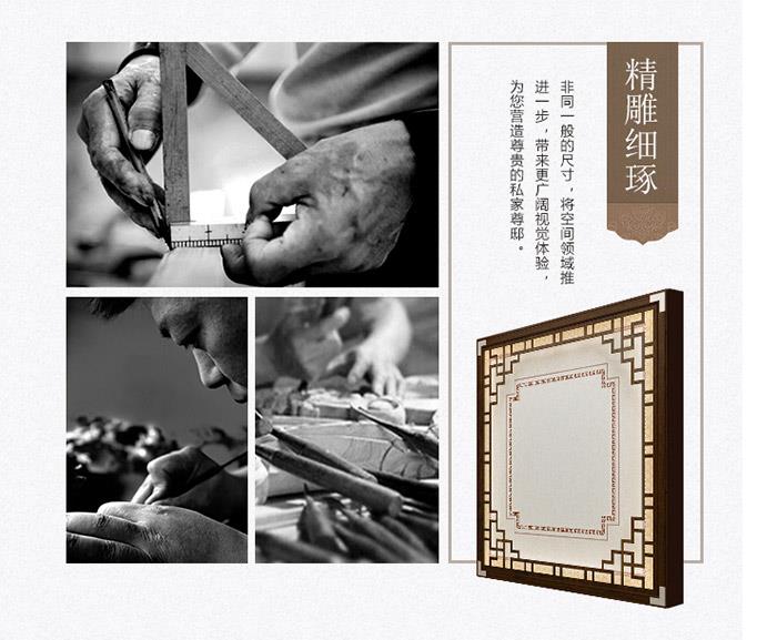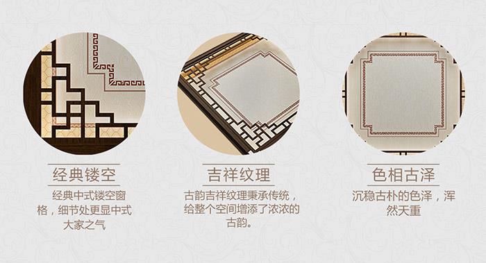 發現新鮮,就是要不一樣。一如古韻流芳采用全新的設計,雖大猶精,有足夠的辨識度,足以從“眾生相”中脫穎而出。古韻流芳外框沿用古代窗花亞字圖案,巧妙的將厚重的歷史感和現代設計做了過度和融合。 經典中式鏤空窗格,細節之處可彰顯濃厚的歷史氣息,有著代表返璞歸真的純粹,為你詮釋什么是古典。