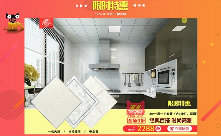 天貓旗艦店 8 平米一廚一衛套餐限時特惠¥2288(一帆風順/浪漫花海/帝皇石)