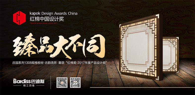 巴迪斯成為中國頂墻行業唯一獲此殊榮的企業。向紅棉獎致敬,感謝紅棉獎的慧眼識珠。對于古韻流芳獲獎也是情理之中、預料之內的事,因為在返璞歸真的潮流之上,傳承美學經典的東西,必定是獨具一格的。今年的廣州設計周,