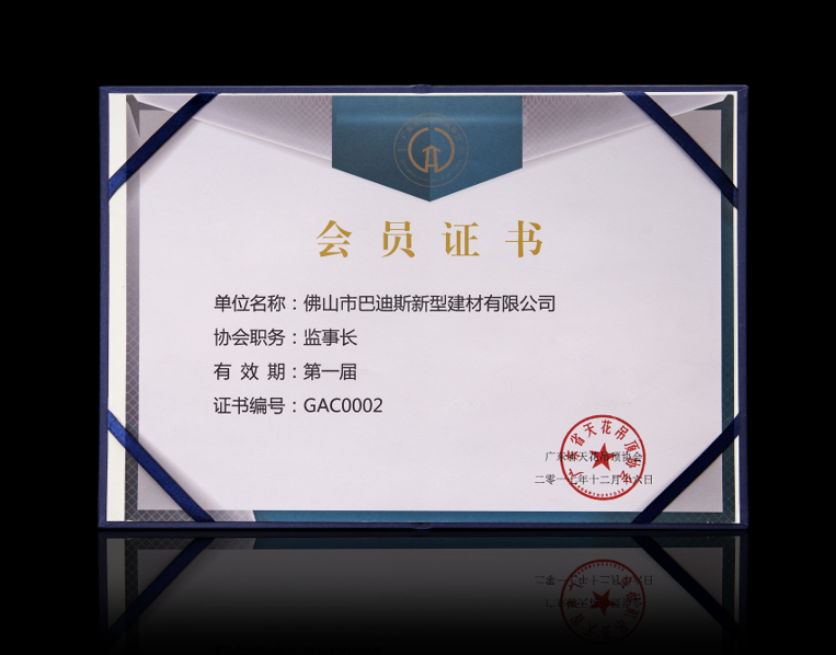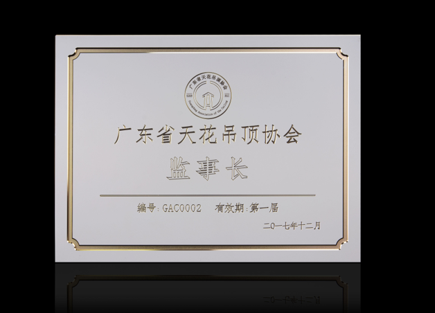 巴迪斯董事長龍國勝榮譽擔任“廣東省天花吊頂協會第一屆監事長”,