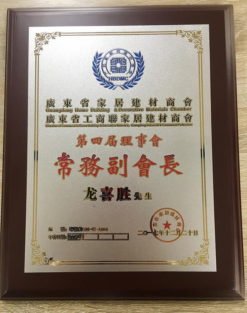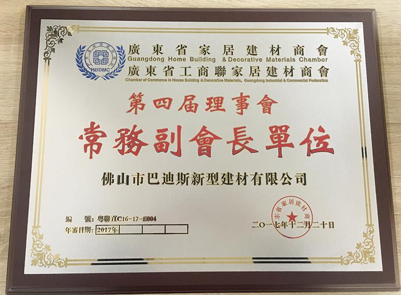巴迪斯憑借在行業(yè)的地位和影響力,當選為廣東省家居建材商會第四屆理事會常務(wù)副會長單位,而企業(yè)創(chuàng)始人,