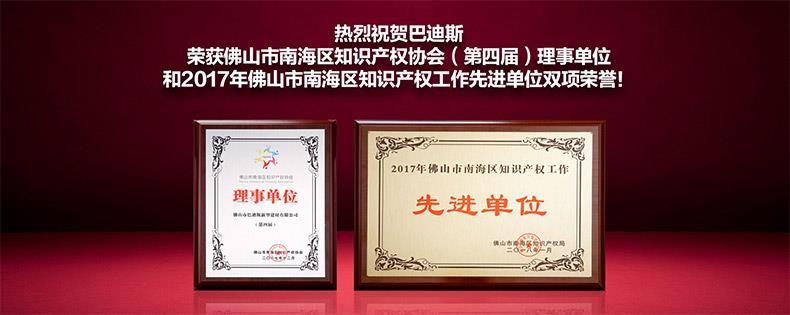 此次巴迪斯榮獲“佛山市南海區知識產權協會(第四屆)理事單位”和“2017年佛山市南海區知識產權工作先進單位”稱號,是對巴迪斯是再一次的激勵,更是巴迪斯知識產權發展史上的具有里程碑意義的事件。