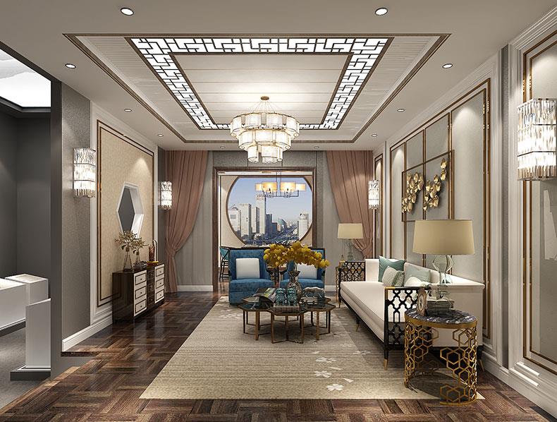 客廳空間所用到的負(fù)離子生態(tài)吊頂板材素絹,具有360°持續(xù)增發(fā)負(fù)氧離子的功能,能產(chǎn)生森林級(jí)別的新鮮空氣,讓您身處客廳也能呼吸到新鮮空氣。此外客廳空間還用到了素琴、中式雕花燈等裝飾材料,以期打造更時(shí)尚的輕奢魅力。