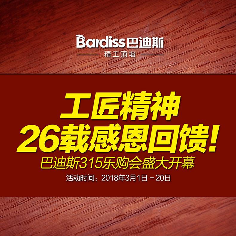 2018年3月1日-3月20日315活動期間,巴迪斯以“315樂購會”作為開年的第一份大禮,在全國各地的終端門店推出了大型的315感恩回饋活動。以“工匠精神 26載感恩回饋”為主線,推出了令人心動的大優惠和優質的服務,讓廣大消費者朋友放心體驗高品質生活!