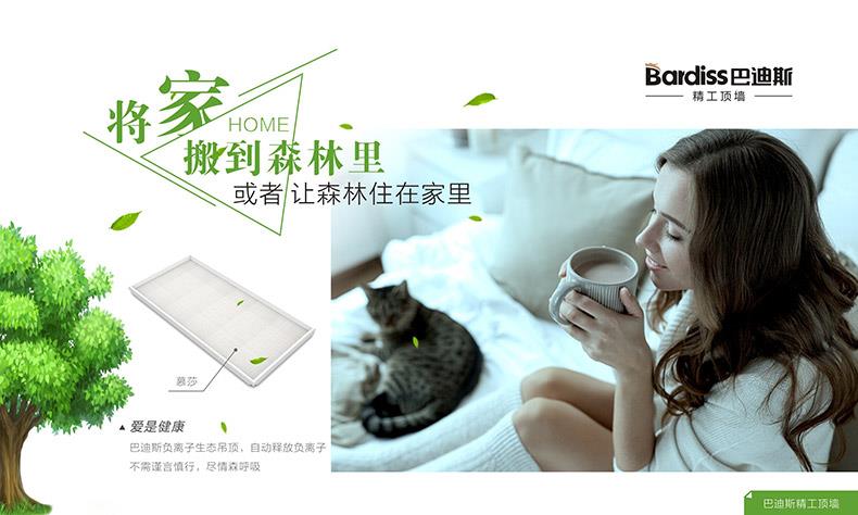 家,可以是溫馨的小窩,可以是充滿愛的豪宅,但是一定要清新健康!巴迪斯負離子生態吊頂可以讓后來的我們住在森林中,1cm³釋放4830個負離子,既能凈化空氣中的有害物質,又能好好保護我們。