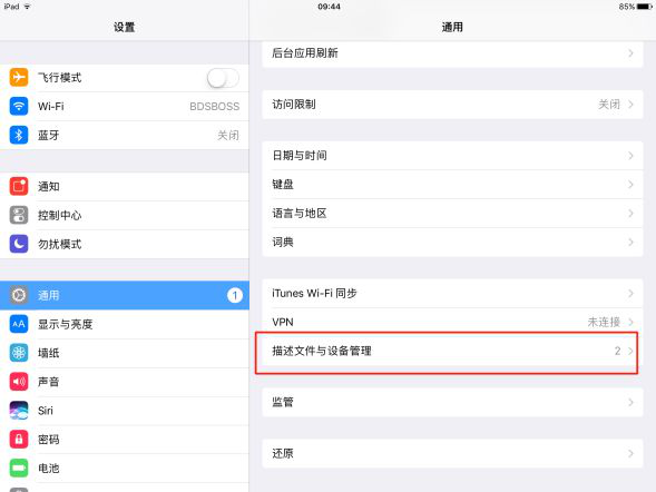 (↑步驟4:找到"描述文件與設備管理",點擊↑)