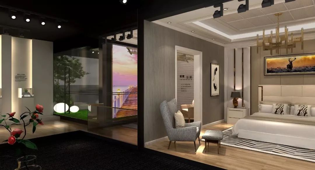超400平米的展廳內部,劃分成餐廳、客廳、陽臺、臥室、衛生間五大區域,模擬出日常生活中的環境。