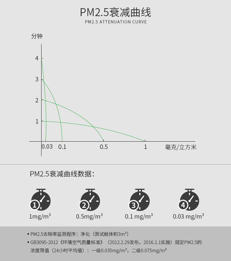 l PM2.5去除率監(jiān)測(cè)程序:凈化(測(cè)試艙體積3m³)