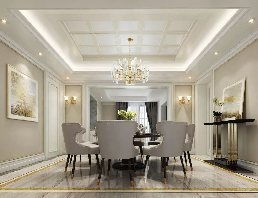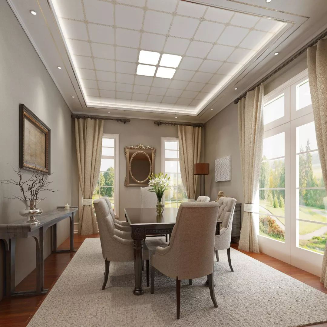 豪庭風(fēng)格較適用于面積較大的家庭,如圖所示,通過安裝造型頂,增加室內(nèi)的視覺面積。