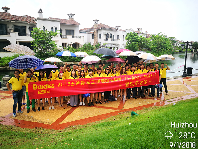 9月1日,巴迪斯精英團隊風雨無阻,臺風大雨也阻擋不住他們戶外團建的熱情。從公司總部出發(fā),經(jīng)過4個多小時的車程,抵達了第一站惠州雙月灣。冒著雨撐著傘,你一言我一語,漫游在附近的攝影天堂——西班牙小鎮(zhèn),欣賞著歐式風情的建筑。