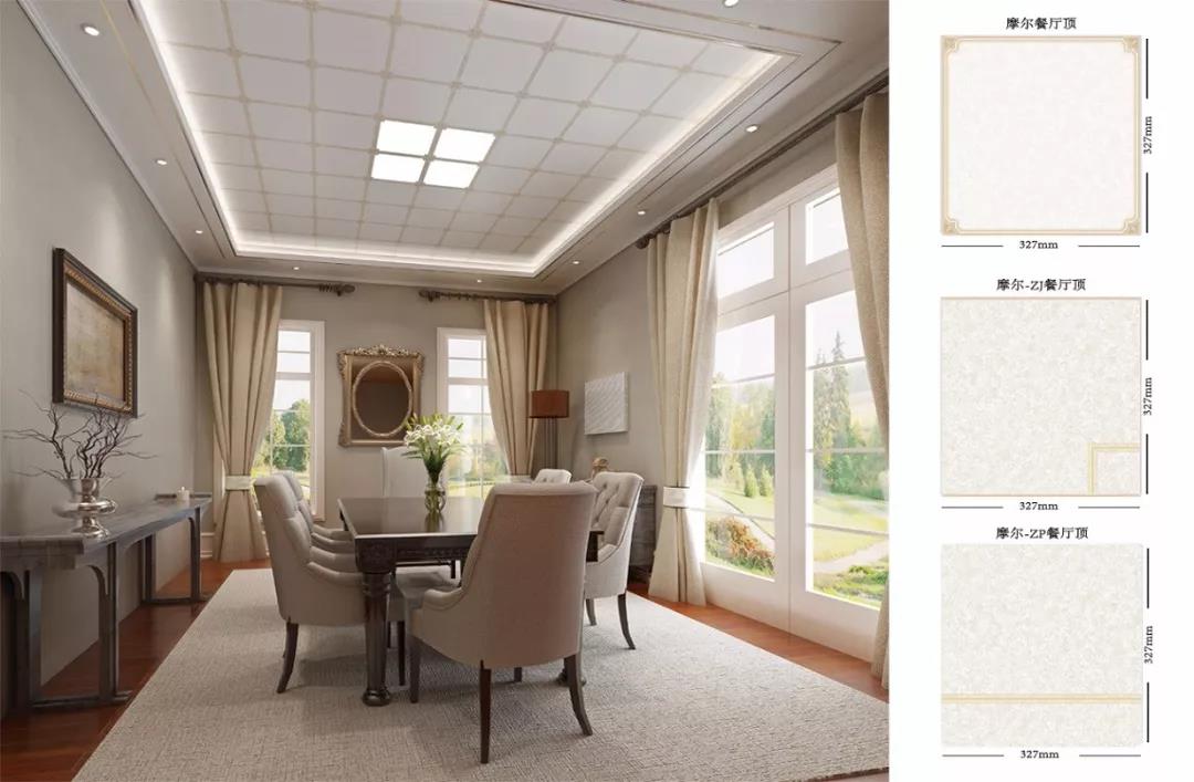 從視覺上看,兩種板材巧妙的利用了線條分割,將原本一體的天花區分成一個個錯落有致的獨立空間,著重突出整體架構的次序。再加上兩個產品的顏色為白色,直觀的營造出一種寬敞明亮的感覺。